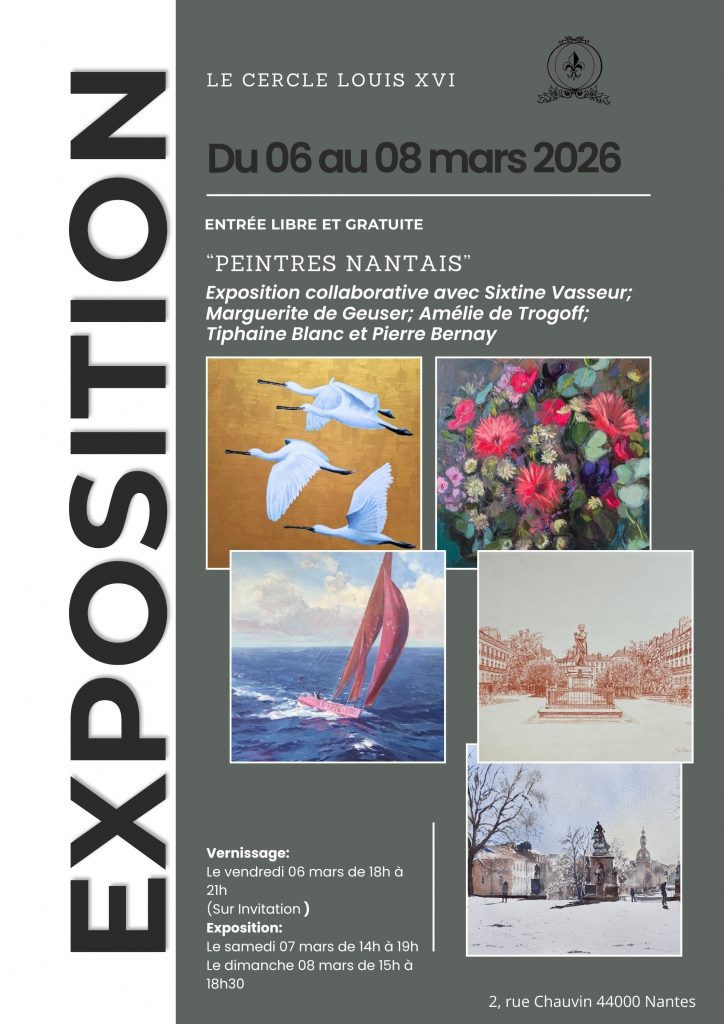 Le Cercle Louis XVI est heureux de vous inviter à l’Exposition « Peintres Nantais » en présence des artistes peintres :